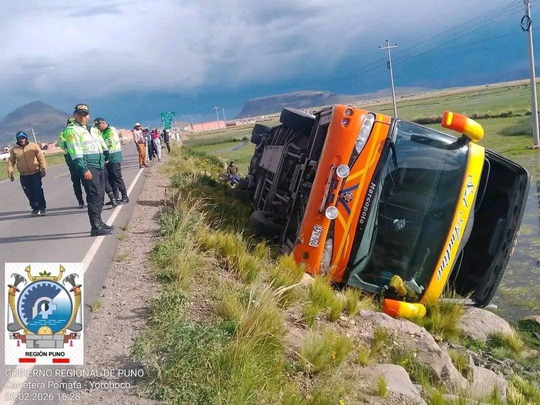 Pomata: Bus de Sol Andino se accidenta en puente de Buena Vista Chacachaca
