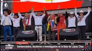 Un reportaje emitido por América Televisión, en el programa Cuarto Poder, reveló que el partido Ahora Nación, que postula a Alfonso López Chau a la Presidencia de la República, incluye…